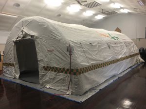 Exercise InTent, inflating the SAVEM Hackett Foundation Air Shelter.